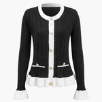 Das Liliana Zweiteiler-Set kombiniert luxuriösen Strick mit zeitloser Eleganz. Die taillierte Strickjacke mit dekorativen Goldknöpfen und stilvollen Taschen verleiht dem Look eine edle Note, während die Wide-Leg-Hose mit hoher Taille für eine schmeichelhafte Silhouette sorgt. Die gerippte Strickstruktur betont die Figur und macht das Set sowohl elegant als auch komfortabel – ideal für schicke Business-Looks, stilvolle Abendveranstaltungen oder gehobene Freizeit-Outfits.