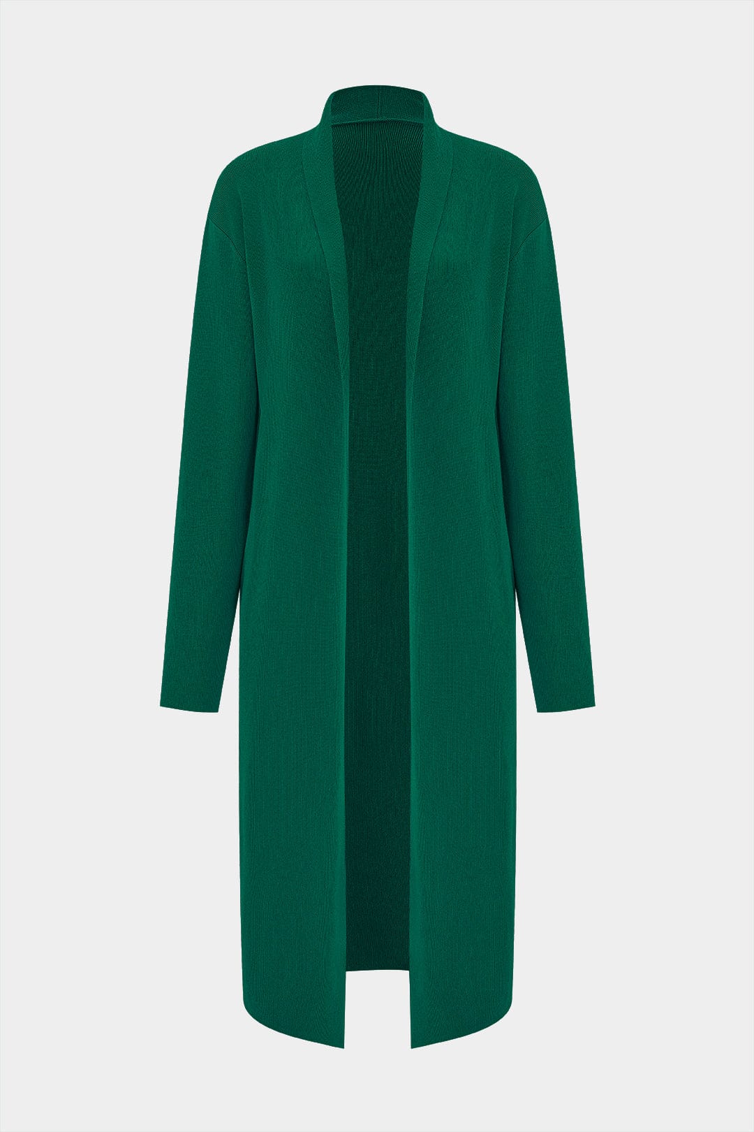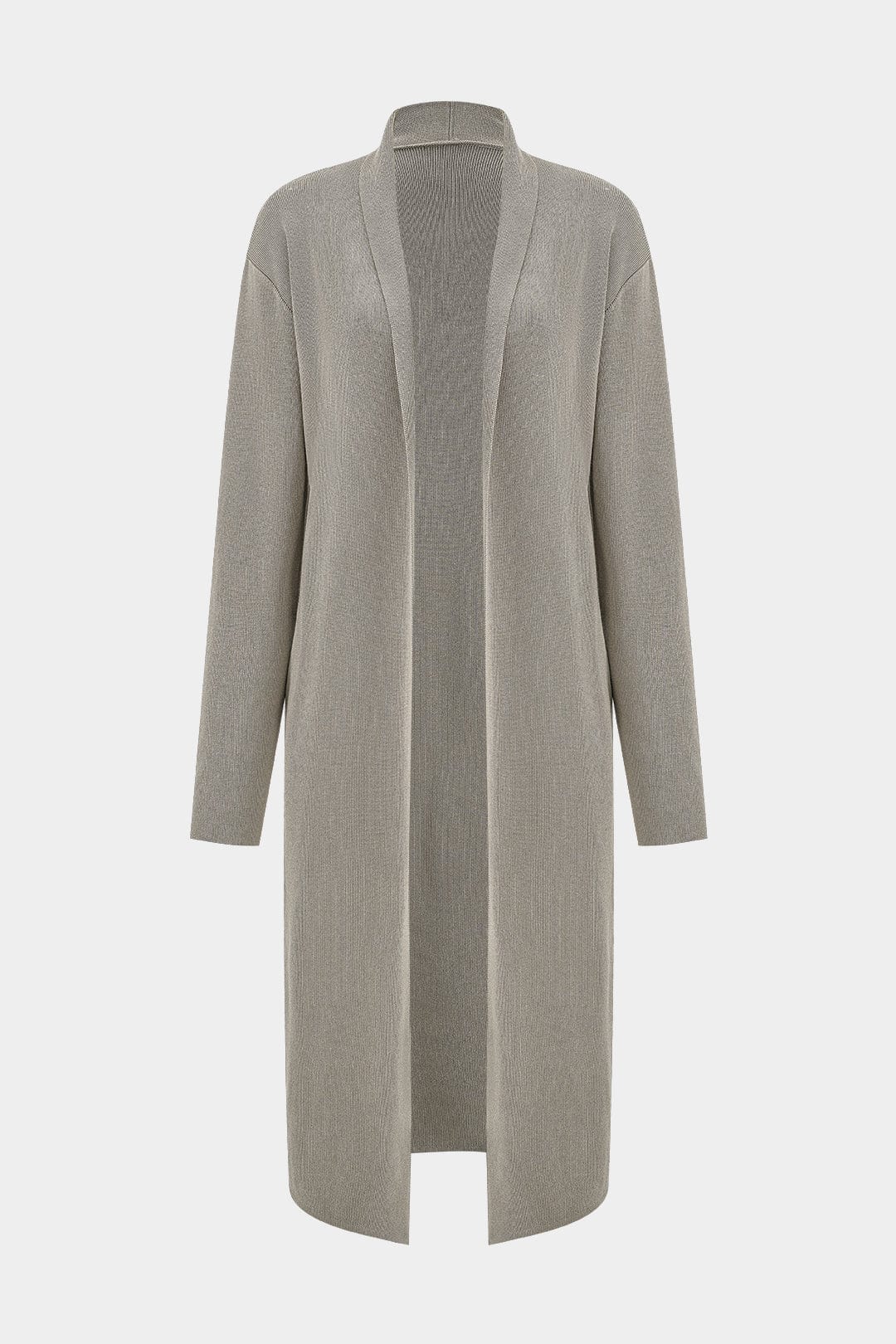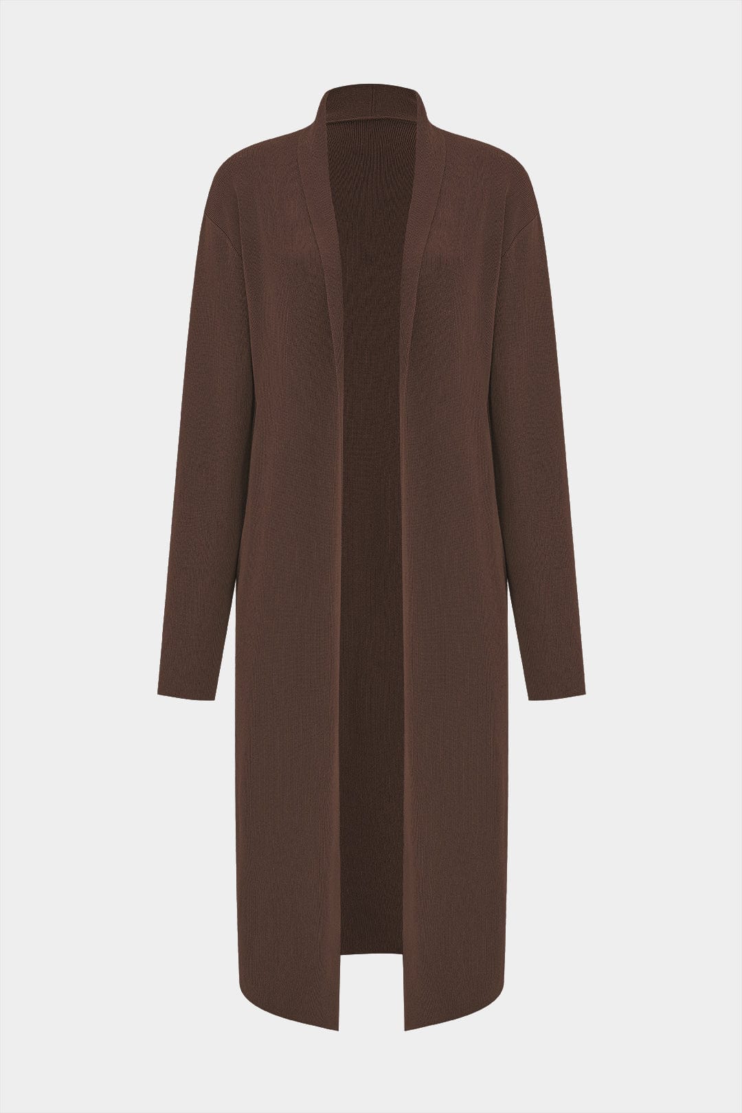 Langer Cardigan – Verleiht dem Outfit Eleganz und sorgt für zusätzliche Wärme.
