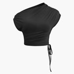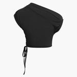 1. Asymmetrisches One-Shoulder Crop-Top – Modernes Design mit raffinierten Raffungselementen.