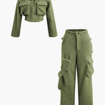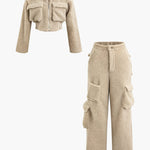 Misha | Teddy-Zweiteiler mit Cargohose & Cropped-Jacke