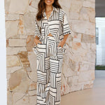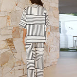 Setzen Sie ein mutiges Fashion-Statement mit unserem Rieke Schickes zweiteiliges bedrucktes Co-Ord Set, das für die moderne Frau entworfen wurde, die sowohl Stil als auch Komfort schätzt. Dieses schicke Zweiteiler-Outfit besteht aus einem oversized Button-up Hemd und weiten Hose, die mit einem auffälligen geometrischen Muster verziert sind. Ob Sie in den Urlaub fahren, einen entspannten Tag verbringen oder stilvoll entspannen möchten, dieses Set bietet die perfekte Balance zwischen Eleganz und Leichtigkeit.