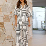 Stylisch & Trendy: Das auffällige geometrische Muster und die lockere Passform schaffen einen mühelos eleganten Look.