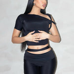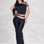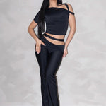 Setze ein mutiges Mode-Statement mit diesem Ronja Asymmetrisches zweiteiliges Set, das ein asymmetrisches Cut-Out-Top und hoch taillierte, ausgestellte Hosen umfasst. Entwickelt für selbstbewusste, modebewusste Frauen, betont dieses figurbetonte Ensemble deine Kurven und sorgt für eine moderne, kantige Ästhetik. Das Cut-Out-Detail auf einer Schulter und die Taillengurtakzente verleihen dem Set eine besondere Einzigartigkeit, was es perfekt für eine Nacht in der Stadt, Partys oder besondere Anlässe macht.