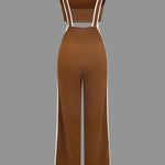 Das Sabine Zweiteiler-Set verbindet modernes Design mit figurschmeichelnden Details. Das elegante Crop-Top mit kontrastierenden Trägern sorgt für einen stylischen Blickfang, während die hochgeschnittene Hose mit weitem Bein eine schlanke Silhouette zaubert. Perfekt für stilbewusste Frauen, die einen Hauch von Sportlichkeit mit femininer Eleganz kombinieren möchten.