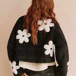 Mach dich bereit für kuschelige Vibes mit unserer schwarzen Teddyjacke mit verspieltem Blumenmuster. Der flauschige Teddy-Stoff sorgt für Wärme und Komfort, während die kontrastierenden weißen Blumen deinem Look eine trendige, verspielte Note verleihen.
