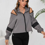 Rüste deinen Kleiderschrank auf mit der Gudula Sportlichen Windbreaker Jacke, die für Komfort, Stil und Vielseitigkeit entwickelt wurde. Aus leichtem und atmungsaktivem Material gefertigt, ist diese Jacke perfekt zum Überziehen über deine Gym-Bekleidung, lässige Outfits oder Streetwear-Looks. Mit ihrem trendigen Cropped-Schnitt, auffälligen weißen Ärmelakzenten und dem praktischen Reißverschluss verleiht diese Jacke jedem Outfit eine mühelose, coole Note.