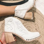 Elisa | Western-Stiefeletten in Nude mit Blockabsatz & Nieten