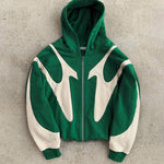 Dieser modische Kapuzenpullover mit Reißverschluss vereint urbanen Stil und Komfort in einem modernen Design. Die markanten, kontrastierenden Linien verleihen dem Hoodie einen trendigen Look, der sofort ins Auge fällt. Durch den bequemen Schnitt und die weiche Innenseite bietet er optimalen Tragekomfort – perfekt für Alltag, Freizeit oder Streetwear-Outfits. Der Hoodie lässt sich vielseitig kombinieren und bringt frischen Schwung in jede Garderobe.