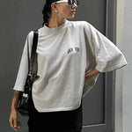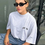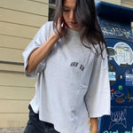 Oversized Damen T-Shirt in Grau mit kleinem Logo-Print