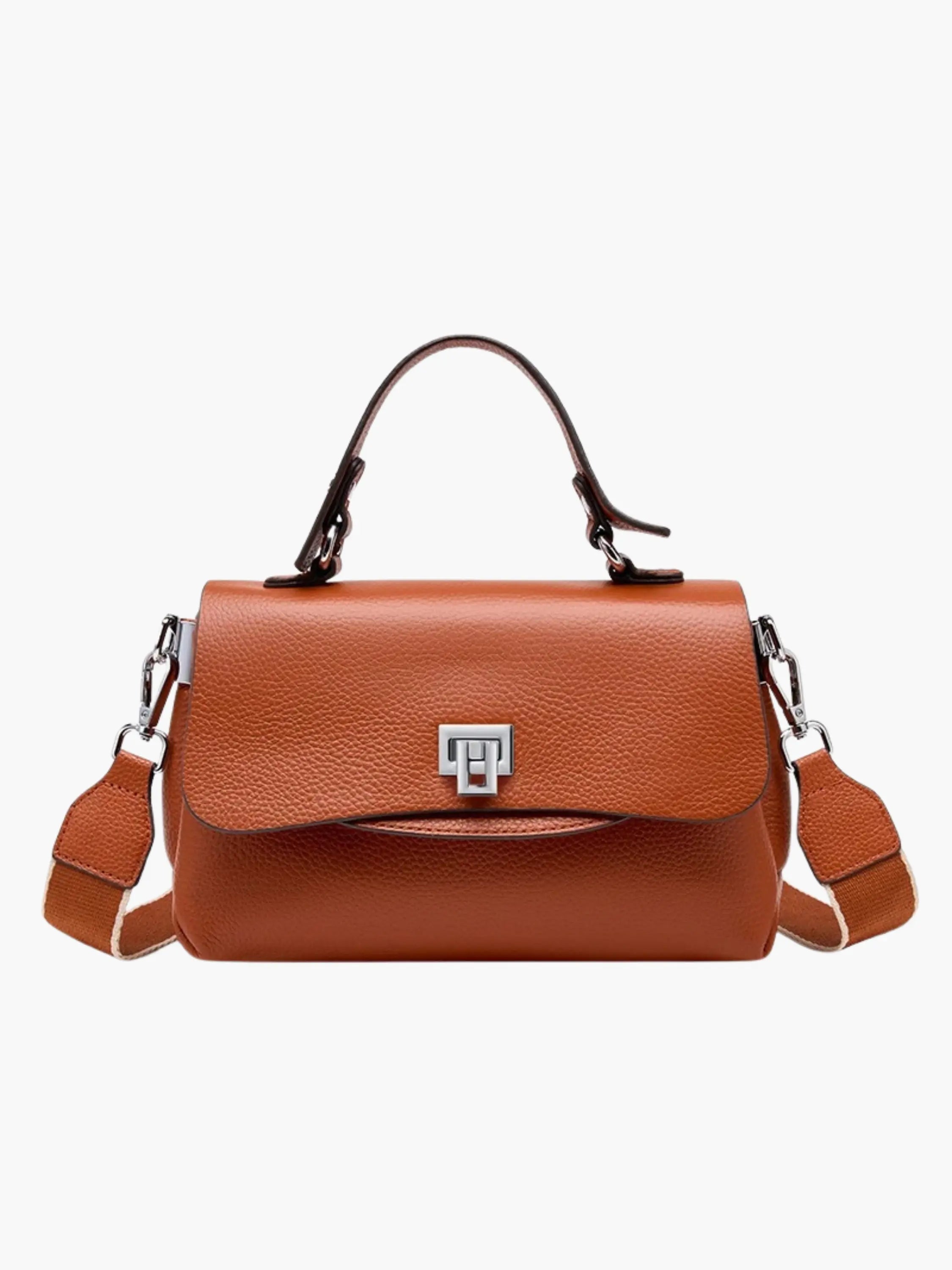 Details: Metallische Beschläge und ein sicherer Klappenverschluss für zusätzliche Eleganz.