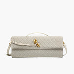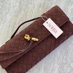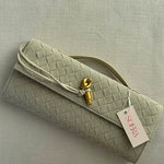 Diese elegante Clutch mit geflochtenem Design und goldenem Knotendetail ist ein wahres Highlight für jeden besonderen Anlass. Dank des abnehmbaren Schulterriemens kann sie sowohl als Clutch als auch als Umhängetasche getragen werden.