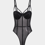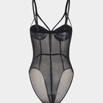 Daisy | Spaghettiträgern Schwarz Verführerischer Mesh-Body mit Bügel-Cups