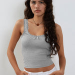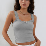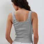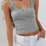 Upgrade deine Garderobe mit dem Nelli Trendigen Rippen-Top für Damen, entworfen für Frauen, die Komfort und Stil gleichermaßen lieben. Mit zarten, spitzenbesetzten Trägern und einer süßen Schleifendetail ist dieses ärmellose Camisole perfekt für entspannte Outfits, Layering oder stilvolles Loungen.