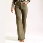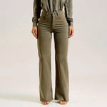 Diese Damen-High-Waist-Jeans mit Schlag und Raw-Hem ist die perfekte Kombination aus Vintage-Charme und modernem Komfort. Der hohe Bund betont die Taille und sorgt für eine feminine Silhouette, während das ausgestellte Bein die Beine optisch streckt und für einen eleganten, retro-inspirierten Look sorgt.