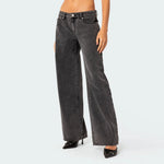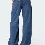Diese Damen-Weitbein-Jeans in dunkler Vintage-Waschung kombiniert modernen Chic mit einem Hauch von Retro. Der gerade, weite Schnitt sorgt für eine schmeichelhafte Silhouette und verleiht dem Outfit eine entspannte, aber stilvolle Ausstrahlung. Die dunkle Waschung bringt eine elegante Note ins Spiel und macht die Jeans besonders vielseitig kombinierbar – von lässigen Freizeit-Looks bis hin zu smart-casual Outfits.